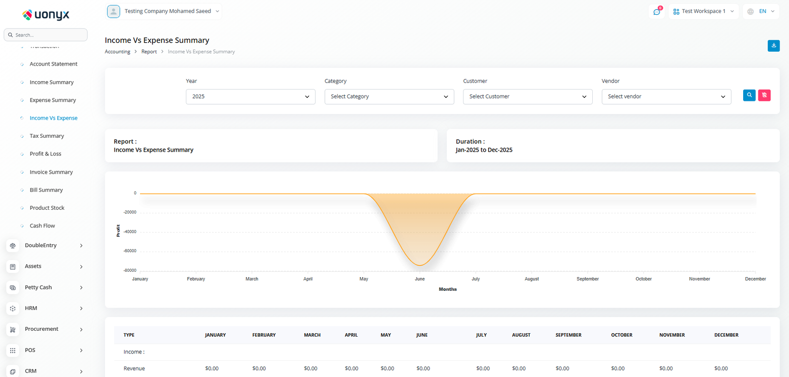 A budget is a financial plan for a specified period to keep in check with the working capital. This feature here helps to maintain the capital flow. You can set monthly, quarterly, half-yearly, or yearly budgets according to your business plans and needs. The main categories are “Income” and “Expense” where one can edit /update /delete the sub-categories as well.