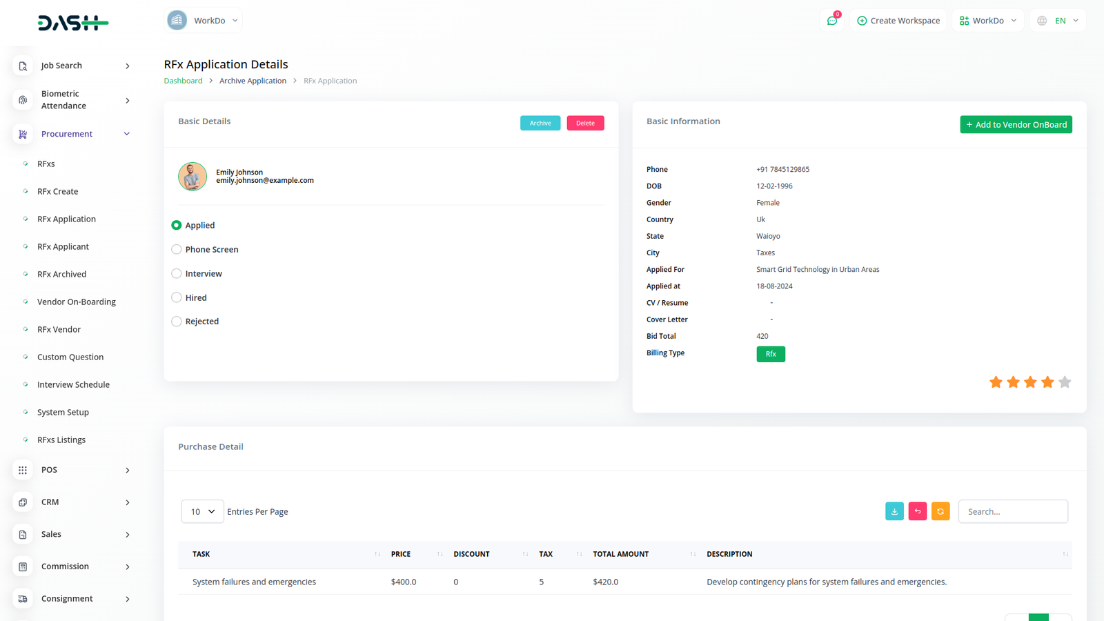 Automate repetitive tasks and eliminate manual data entry with Dash SaaS`s built-in workflows. Standardize your procurement process by setting up approval chains for purchase orders and ensure all necessary steps are completed before finalizing transactions. This not only saves time but also minimizes errors and improves overall efficiency.