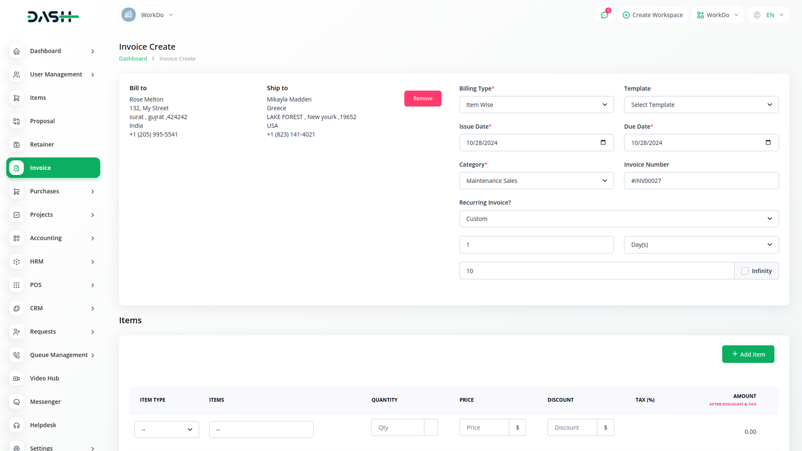 In conclusion, the Recurring Invoice/Bills Integration feature in Dash SaaS revolutionizes the way businesses manage their invoicing processes. With its intuitive interface, customizable recurrence options, and automation capabilities, Dash SaaS empowers businesses to streamline their billing operations and focus on driving growth and success. Whether you're a small startup or a large enterprise, Dash SaaS provides the tools you need to simplify invoicing and enhance efficiency. Experience the convenience and efficiency of automated recurring invoices with Dash SaaS today.