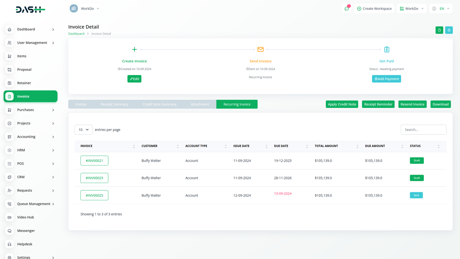 By automating the duplication of invoices/bills based on the specified recurrence period, Dash SaaS eliminates the risk of human error and ensures accuracy in billing.