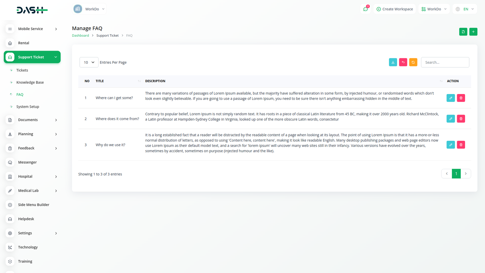 Add new tickets as and when required. Get a detailed list of all the generated tickets with their respective ticket IDs, categories, subject, status, and essential information. Edit them by adding a new response or changing the status with a simple click.