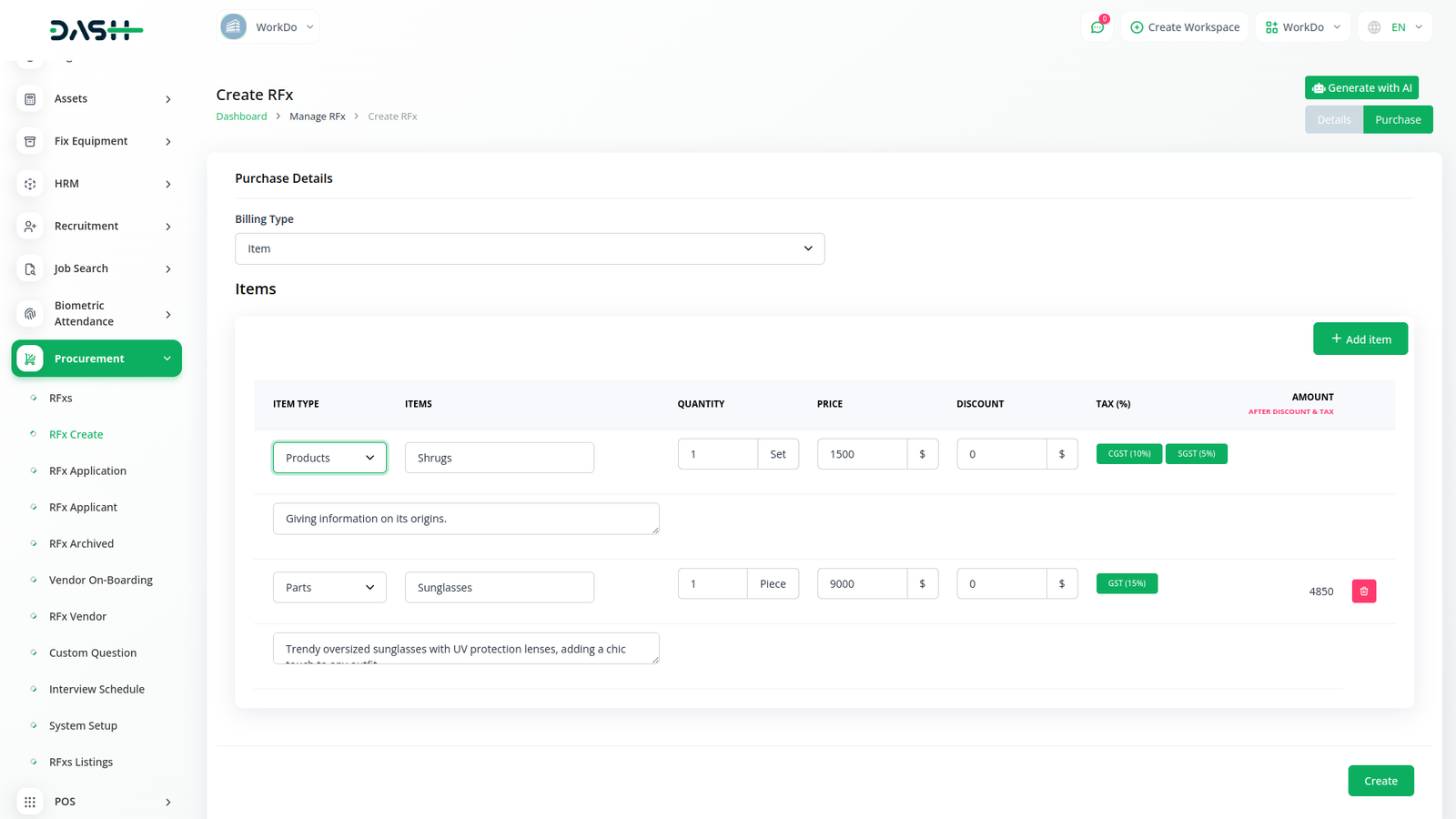 Ensure compliance with organizational policies and regulatory requirements using Dash SaaS`s robust procurement module. Maintain comprehensive records of all procurement activities, including approvals, transactions, and communications. This centralized record-keeping not only simplifies audit processes but also enhances transparency and accountability across your procurement operations..