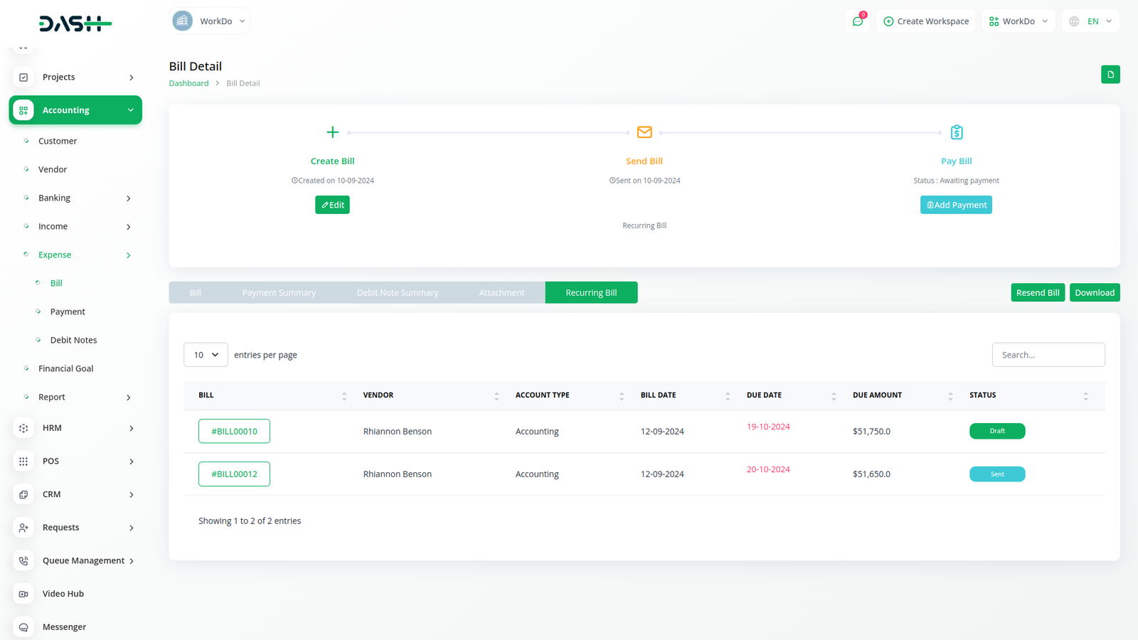 By automating the duplication of invoices/bills based on the specified recurrence period, Dash SaaS eliminates the risk of human error and ensures accuracy in billing.